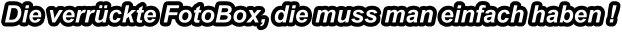 Die verrückte FotoboxDie verrückte Fotobox ist ein “mobiles Fotostudio”für Veranstaltungen jeder Art.Sie erhalten alle Fotos auf einem USB Stick und zusätzlichein Passwort geschützten Zugang zum Online Fotoalbumfür Sie und Ihre Gäste.Dort können Sie sich alle Fotos ansehen, drucken und downloaden.Oder mit Drucker um die Partyfotos gleich auszudruckenfür das Gästebuch oder zum mitnehmen. Die vielen Accessoires erhöhen den Spaßfaktor.Auf Wunsch mit Green Screen Hintergrundsystem(hier stehen verschiedene verrückte Hintergründe zur Auswahl)Für weiter Infos rufen Sie mich einfach an.